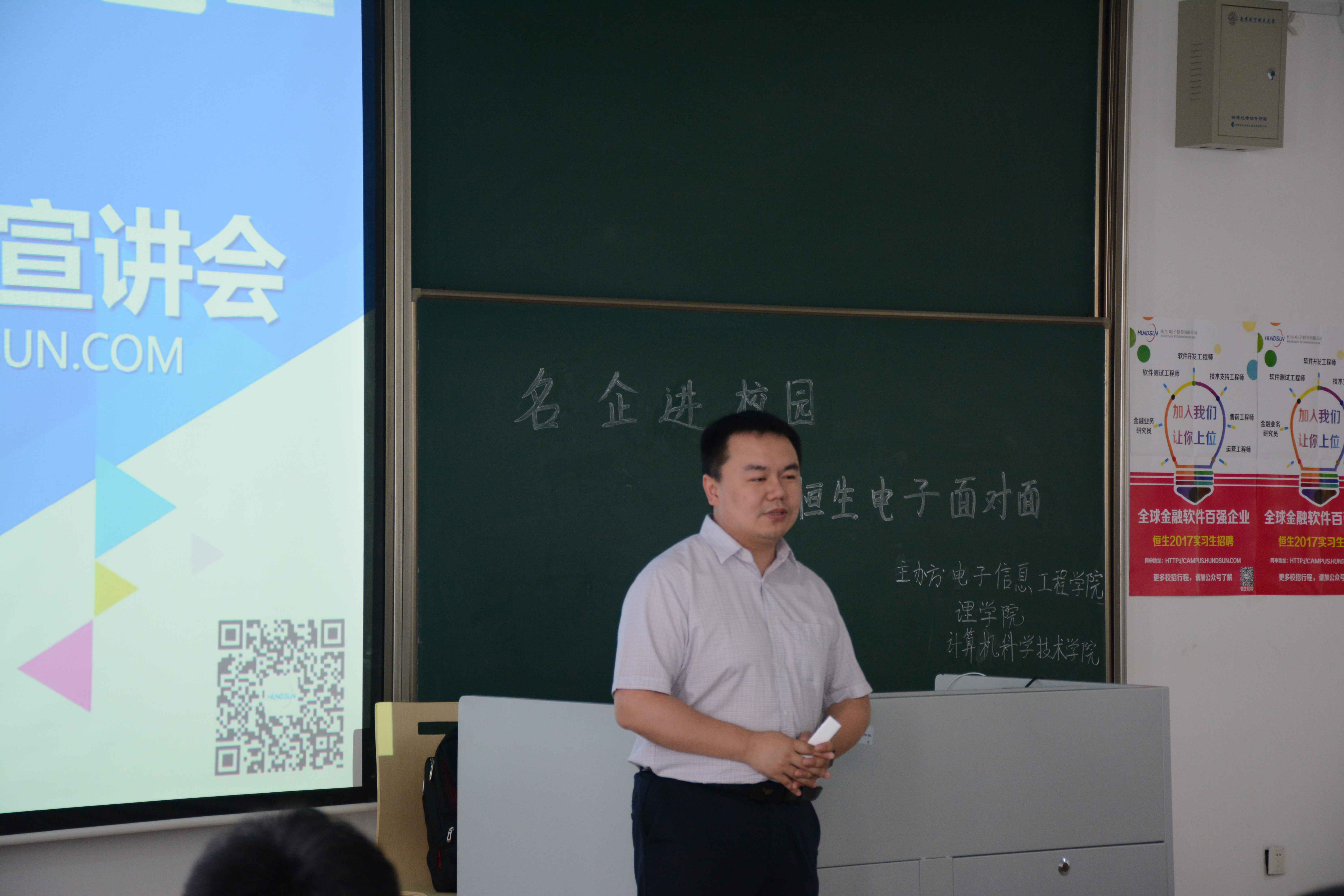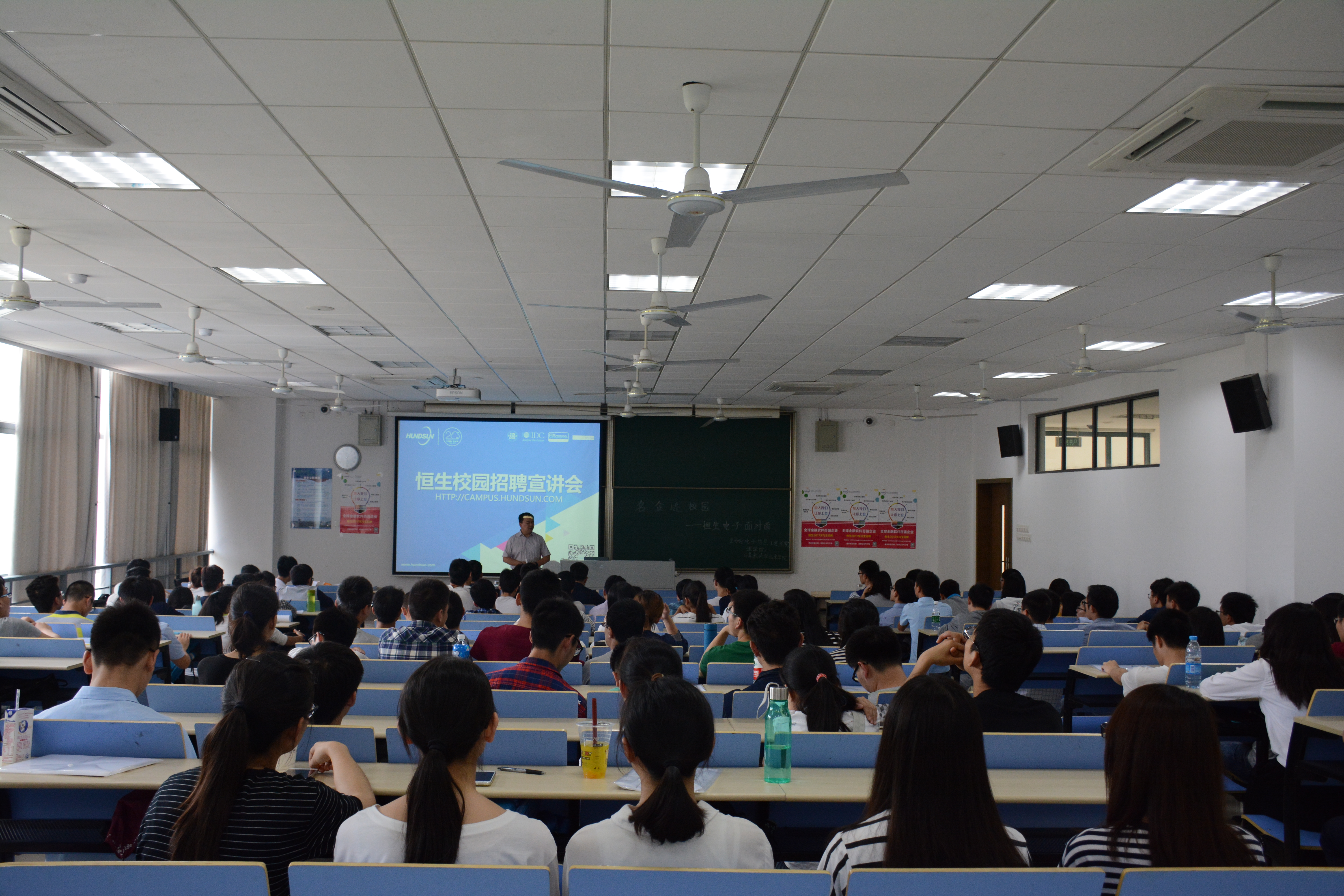 恒生电子股份有限公司位于浙江杭州,是中国领先的金融软件和网络服务供应商,连续八年入选金融软件公司百强,也是我院学生就业集中单位。作为名企进校园系列活动之一,此次宣讲会的成功举办使得企业与学校以及同学加强了联系,为进一步开展校企合作打下了基础,同时也为我院学生搭建了实践实习平台,提高了学生的就业能力,拓宽了学生的就业面。(作者:杨光)