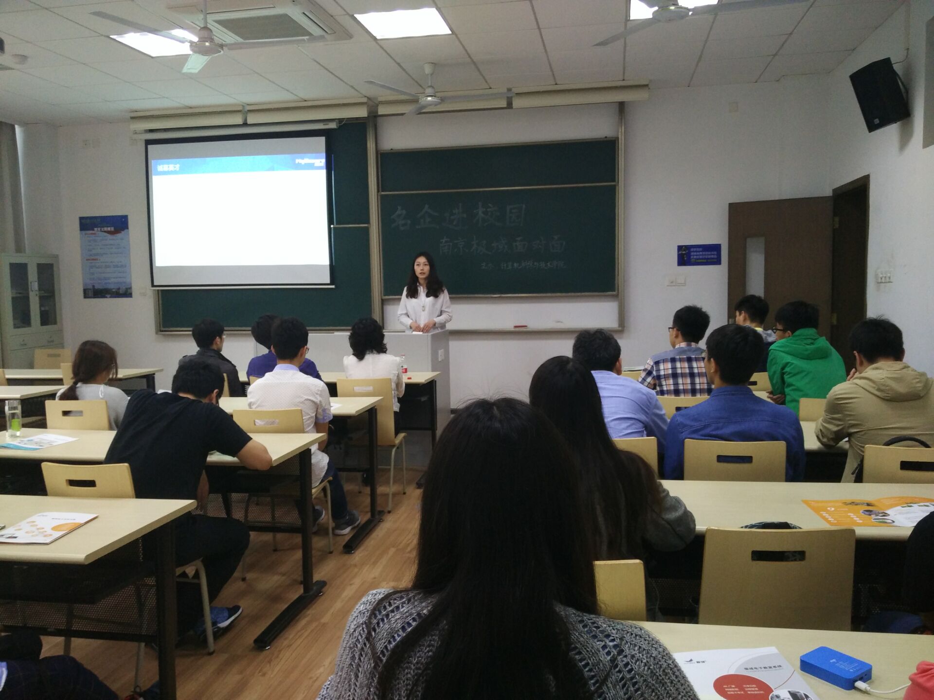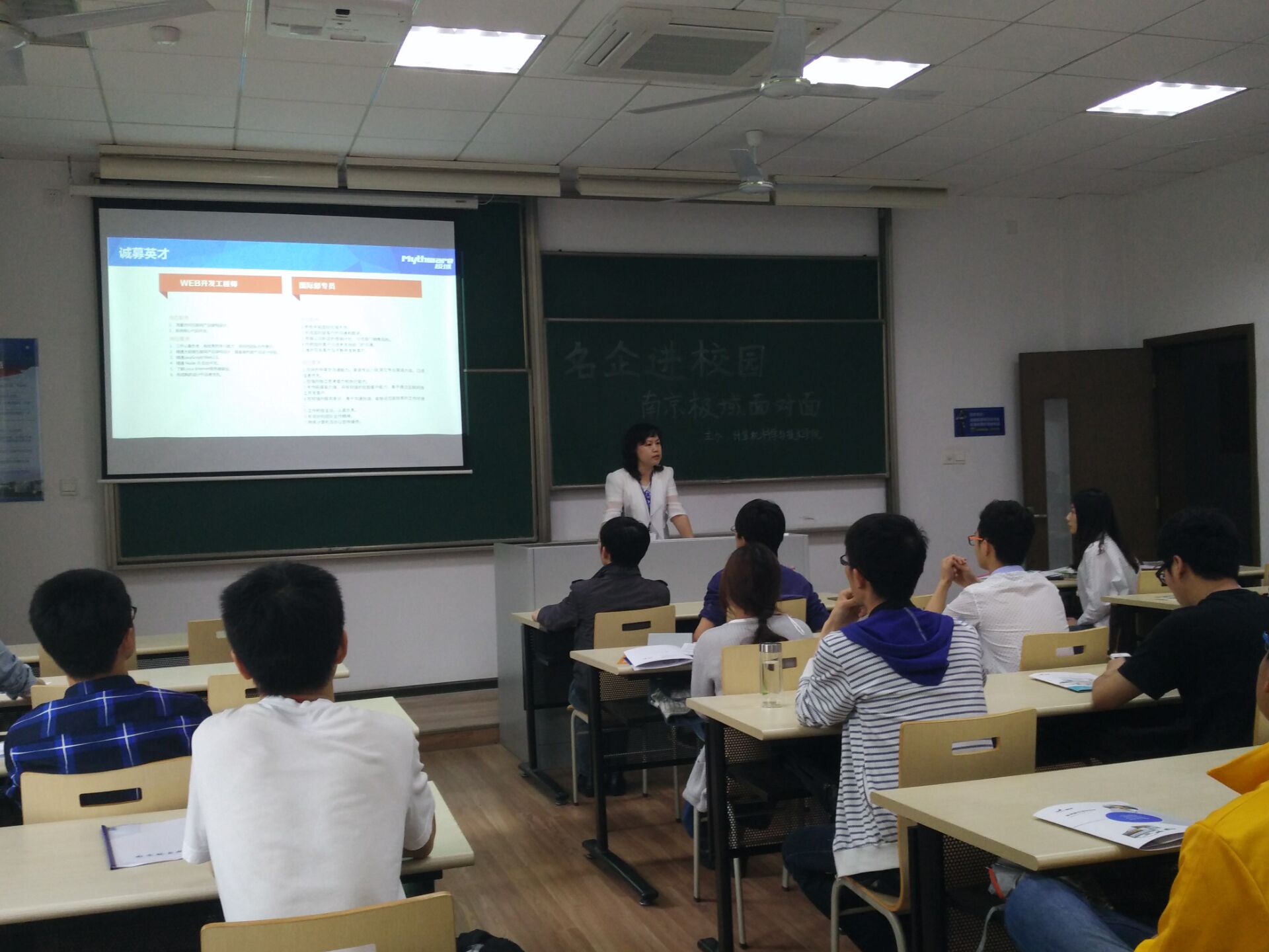此次招聘会分为企业宣讲和招聘面试两部分。企业宣讲部分,由公司副总裁张总着重介绍公司背景和发展宏图,展示了公司“以科技创新产品、以技术服务客户”的理念和尽早实现在广义教育信息化领域“极行神州,域泽天下”的梦想。此外,公司HR张歌还对实习生招聘计划、培养平台以及薪资待遇等做了详细介绍,减少了同学们对于实习的疑问。
