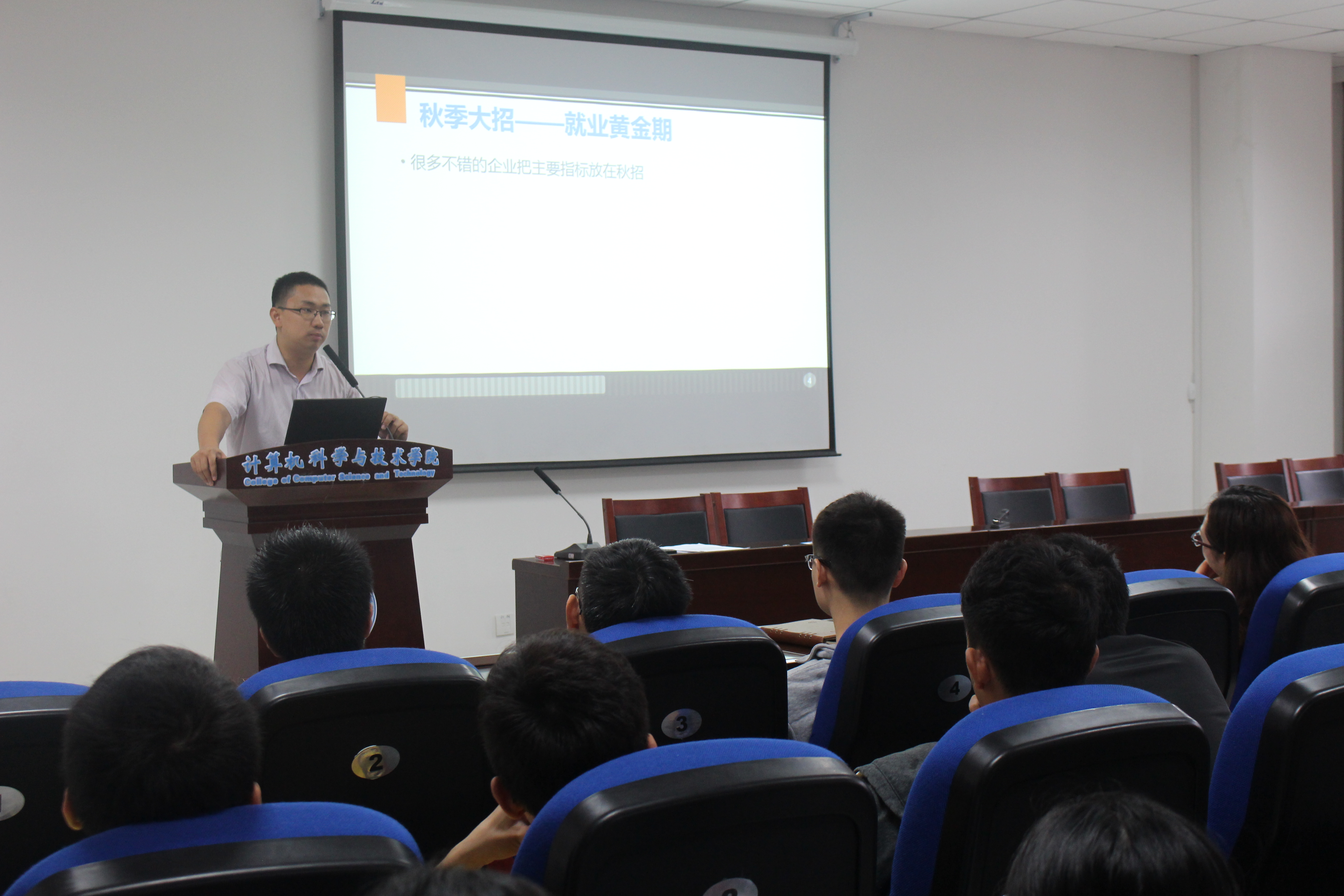 9月29日下午,计算机学院2013级本科生在学院113会议室举行题为“若有梦·任飞翔”的年级会暨就业再动员会议,学院党委副书记王霄、研究生辅导员刘彦辰以及学院2013级本科生参与此次动员会,会议由2013级辅导员杨光主持。