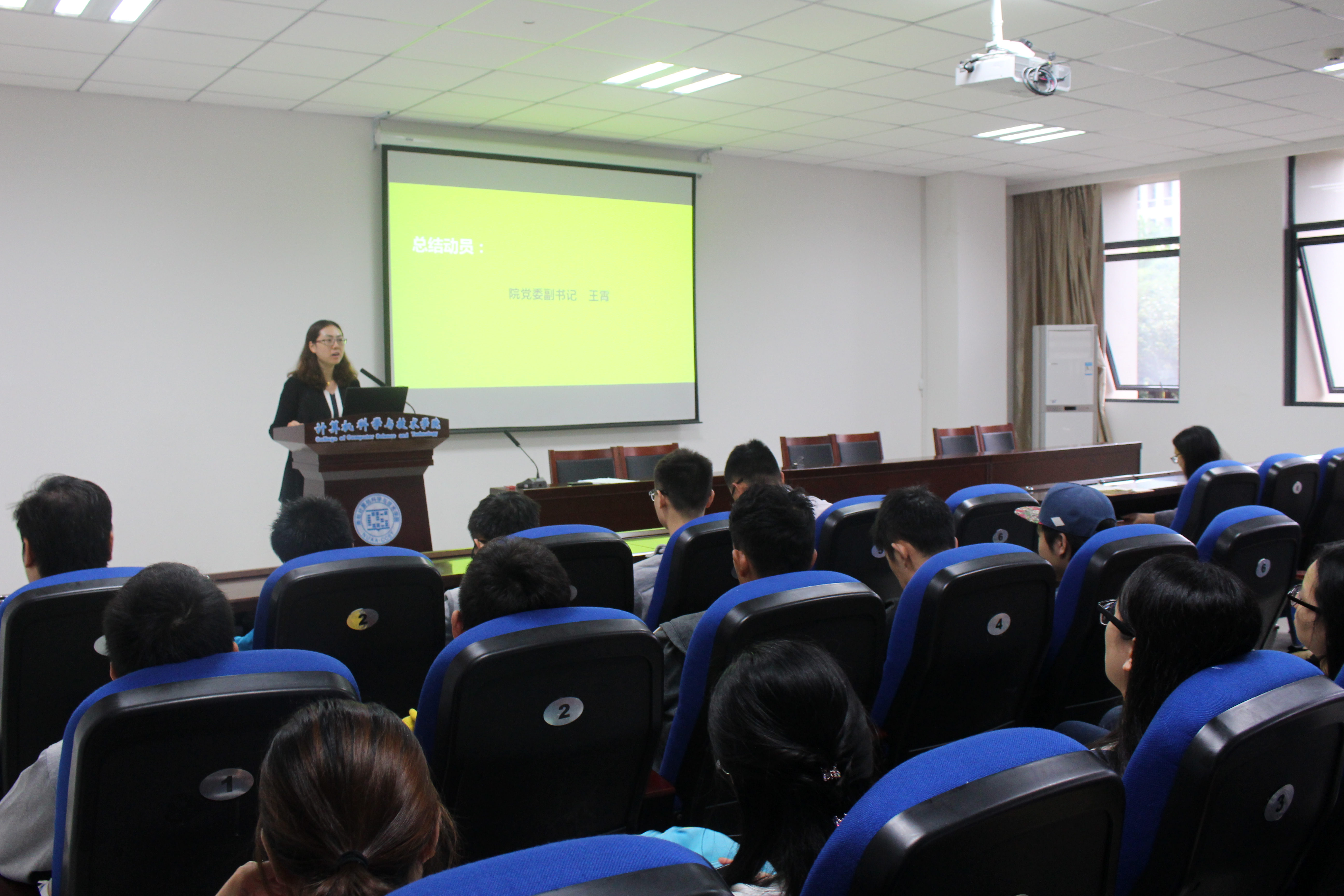 最后,学院党委副书记王霄对就业进行了整体再动员。从“着眼未来,脚踏实地,自我定位”三个方面提醒同学们:一是要着眼未来选定自己未来的人生方向;二是要脚踏实地,在选择就业之前多做准备,进行有准备的战斗;三是要有自我定位,良好地规划好自己的职业生涯,做好自我评价,从自身出发展望未来。