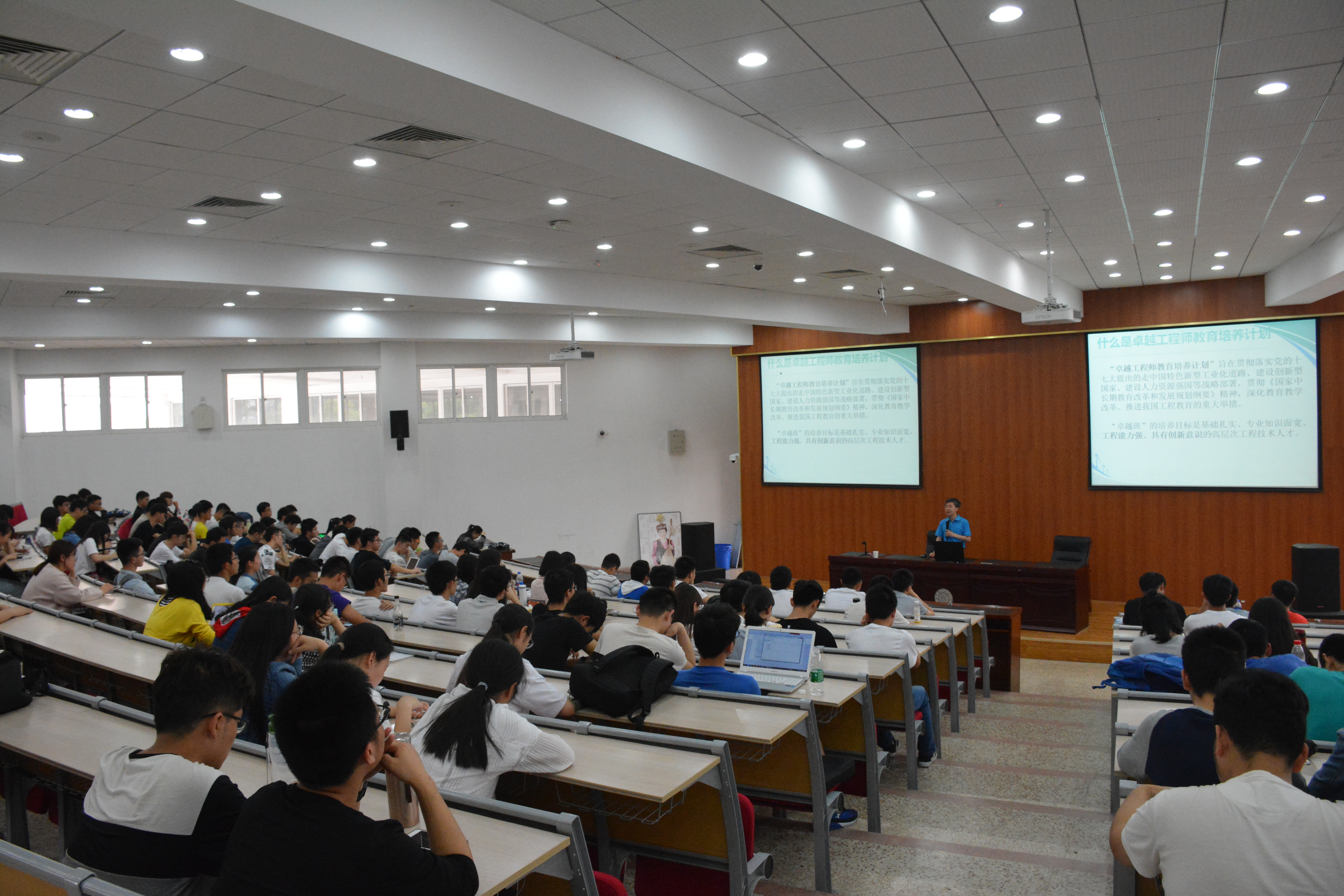 首先,孙涵老师就卓越工程计划的设立目标及培养方向做了详细的介绍,重点讲解学院卓越工程计划中各专业的培养方式和学院针对卓越班而搭建的相关实践实训平台。针对暑期实践训练和相关研究生推免政策做了重点解读,对未来有就业意向和有拓展实践意愿的同学做了专题动员。最后,简要的介绍了卓越工程师班筹建的相关选拔流程。