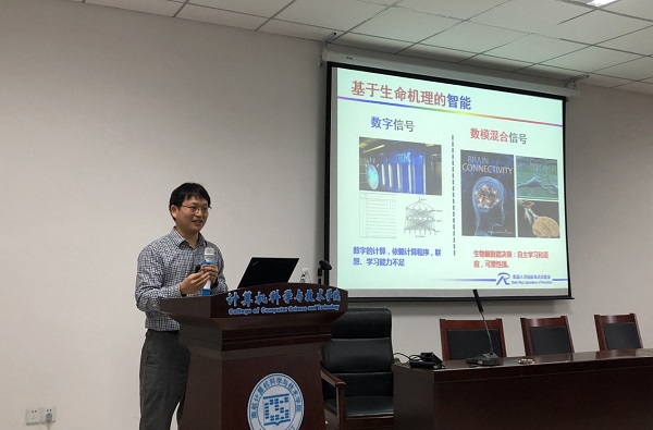 6月9日,计算机学院举办脑机融合智能及应用研讨会,校发展规划处副处长金科、计算机学院院长陈兵出席会议。会议由计算机学院副院长张道强主持,来自计算机学院、自动化学院等相关单位的教师和学生参会听取报告。