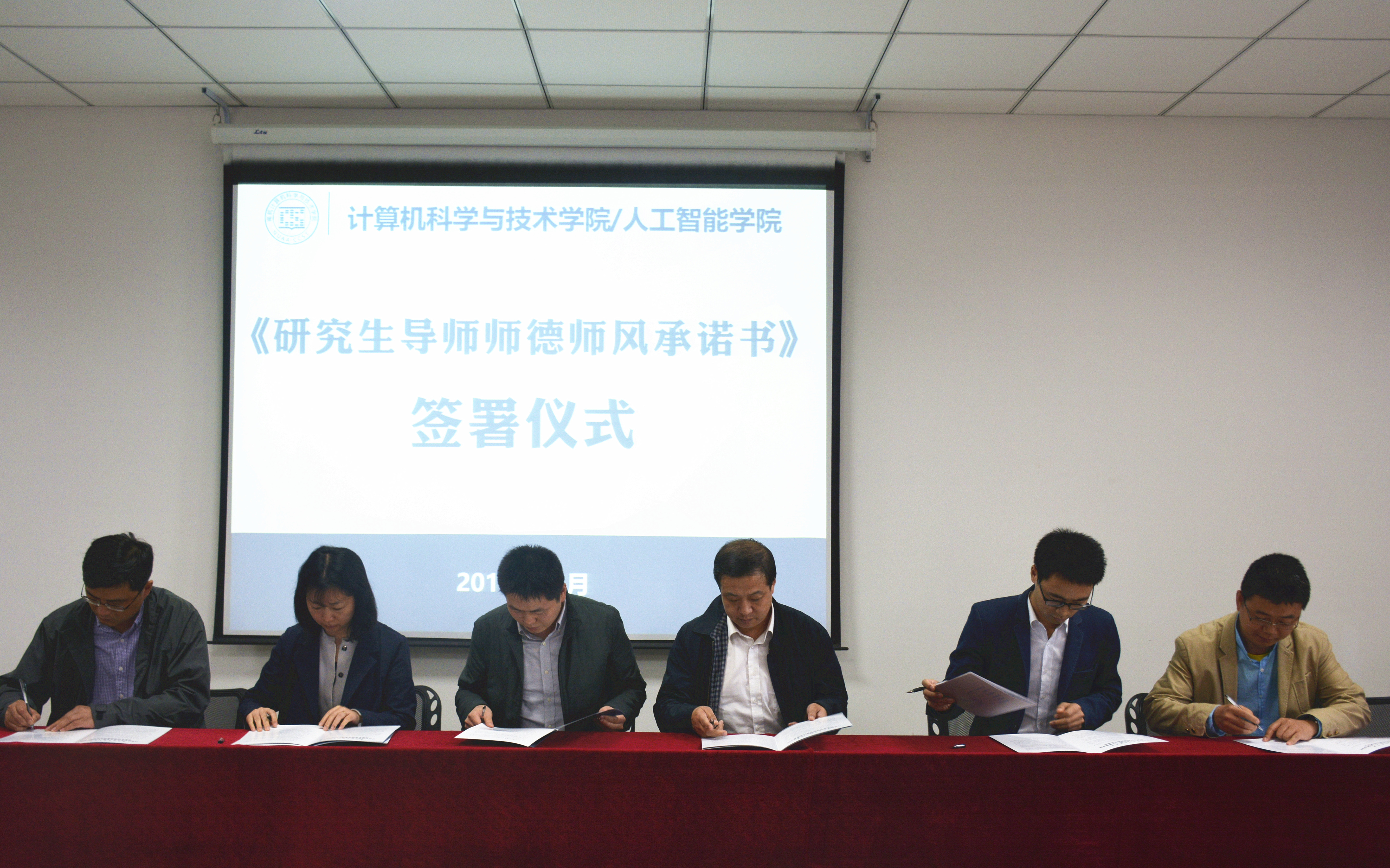 随后,学院举行了《研究生导师师德师风承诺书》签署仪式。根据上级和学校的相关文件精神,承诺书从师德师风、业务素质、培养责任等维度明确了研究生导师的工作要求。全体研究生导师在仪式现场认真阅读,并郑重地签下了自己的名字。