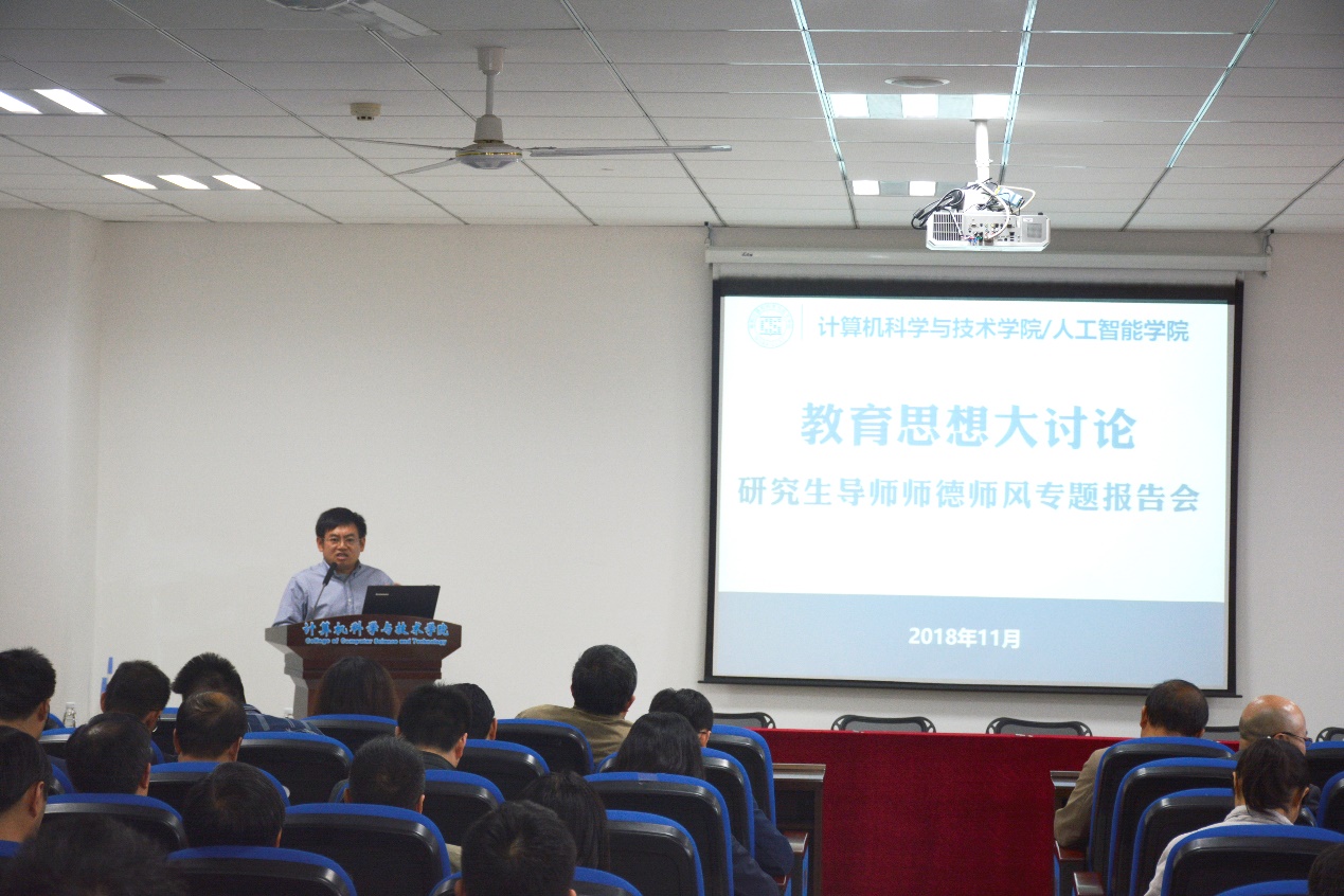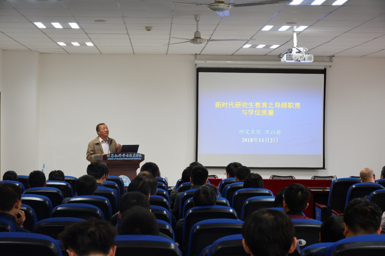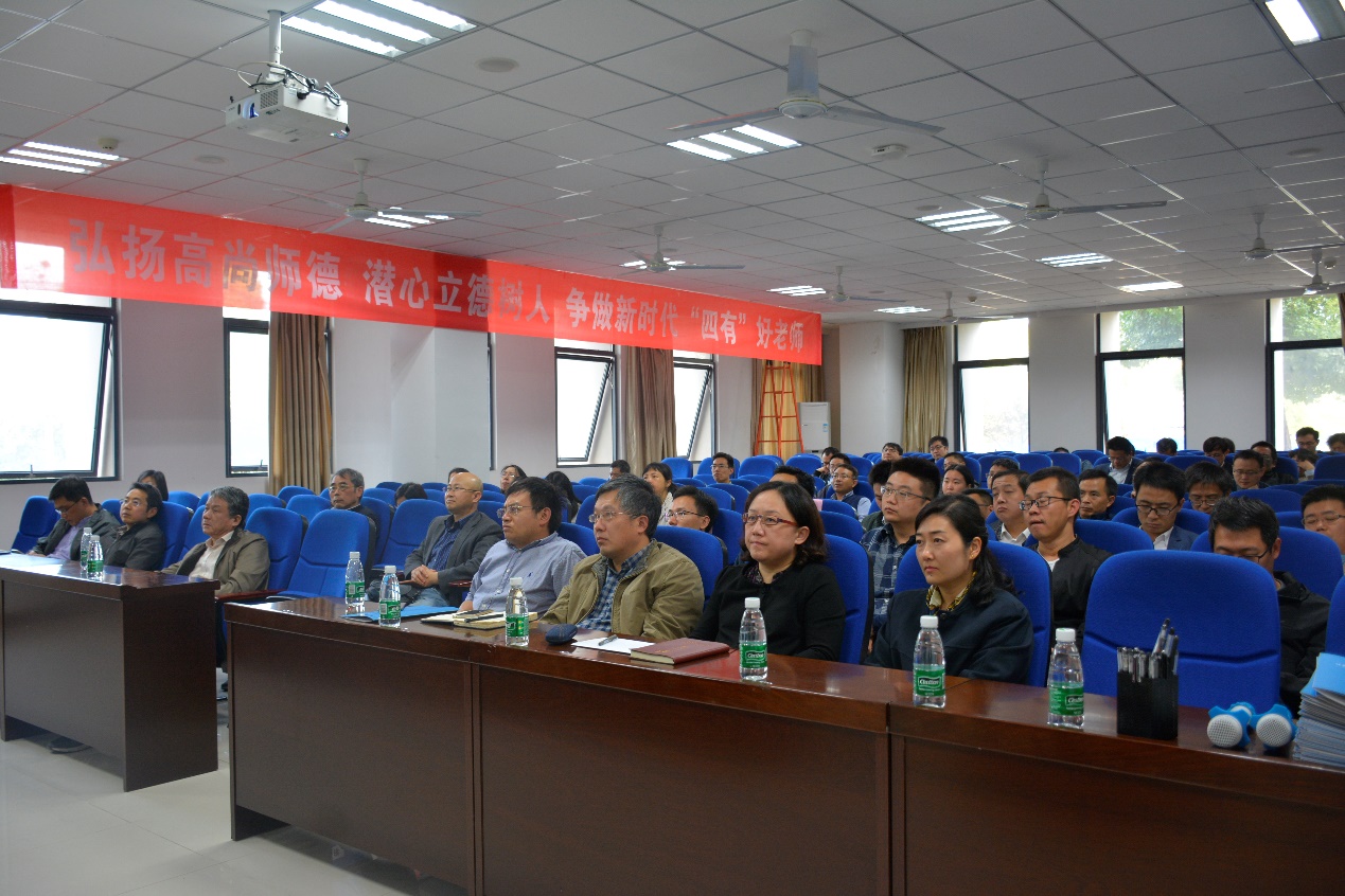 沈以赴副院长的报告围绕研究生教育的新形势新任务、导师职责、学位质量三部分内容展开,强调了研究生导师立德树人的职责与肩负的重任。他指出,研究生导师应强化自身的基本素养,熟悉人才培养目标及人才成长的规律,在师德惩处规范约束下,营造良好师德师风。沈院长还分享了他求学工作中遇到的具体事例,他希望学院全体教师能充分认识到加强师德师风建设的重要性和紧迫性,成为严谨求真、积极向上的楷模。