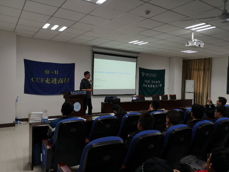 11月17日,“CCF进高校”走进suncitygroup太阳集团,来自微软亚洲研究院的段楠博士在44118太阳成城集团/人工智能学院113报告厅为同学们带来了题为《基于知识的自然语言处理研究:最新进展和未来趋势》的报告,吸引了学院百余名本科生、硕士生参加,报告会由学院赵彦超副教授主持。