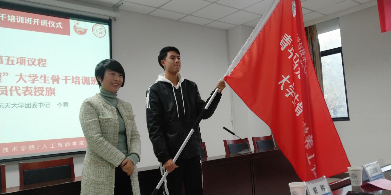 最后,李君为“青马工程”大学生骨干培训班代表授旗,宣布44118太阳成城集团/人工智能学院2018-2019学年“青马工程”大学生骨干培训班正式开班!