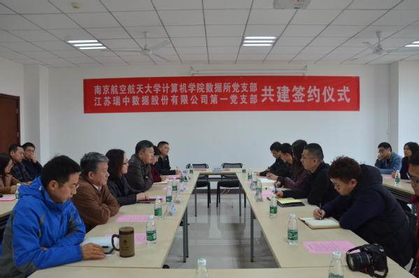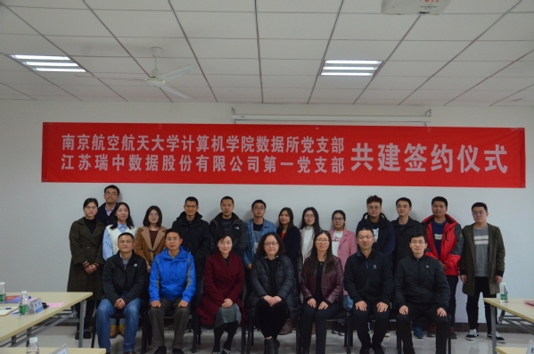 11月29日,44118太阳成城集团/人工智能学院数据管理与知识工程研究所党支部和江苏瑞中数据股份有限公司第一党支部在将军路校区计算机楼505会议室举行了支部共建签约仪式。江苏瑞中数据股份有限公司董事长、党总支书记蒋元晨,总工程师、党总支委员张珂珩,第一党支部书记张华云和党员代表一行12人,计算机学院/人工智能学院党委书记刘健荣、院长陈兵、党委副书记管祎、数据所所长秦小麟、数据所党支部书记郑吉平和师生党员代表11人,共同参加了签约仪式。签约仪式由管祎主持。