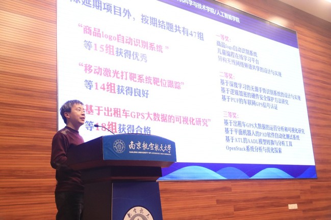 会上,孙涵首先从立项情况、参与学生情况、结题情况和成果情况等四个方面对第七期科创基金项目进行了总结。第七期科创基金项目共立项87项,研究方向涵盖面广,包括网络系统、算法研究、数据挖掘、模式识别、硬件安全等,其中也不乏实用性强、贴近生活的项目。随后,孙涵向同学们解读了第八期科创基金管理办法。新的管理办法加大了对创新创业类项目的鼓励和扶持,进一步强化了过程控制,并对项目结项提出了更高的要求。通过对管理办法的修订,学院进一步完善了科创基金的管理制度,旨在进一步提高学生在高质量成果方面的产出。