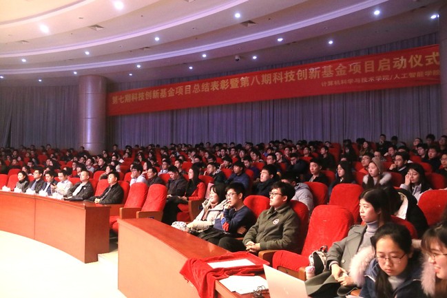 12月22日晚,44118太阳成城集团/人工智能学院第七期科创基金项目总结表彰暨第八期科创基金项目启动仪式在将军路校区1号楼4楼报告厅举行。学校教务处副处长朱建军,校团委副书记丁琛,企业代表江苏鸿信系统集成有限公司市场部经理徐喆、交通基地研发经理葛恒志,计算机学院副院长孙涵、院党委副书记管祎、院长助理赵蕴龙、学院教师代表出席了此次活动,同时吸引了学院300余名本科生参与其中。
