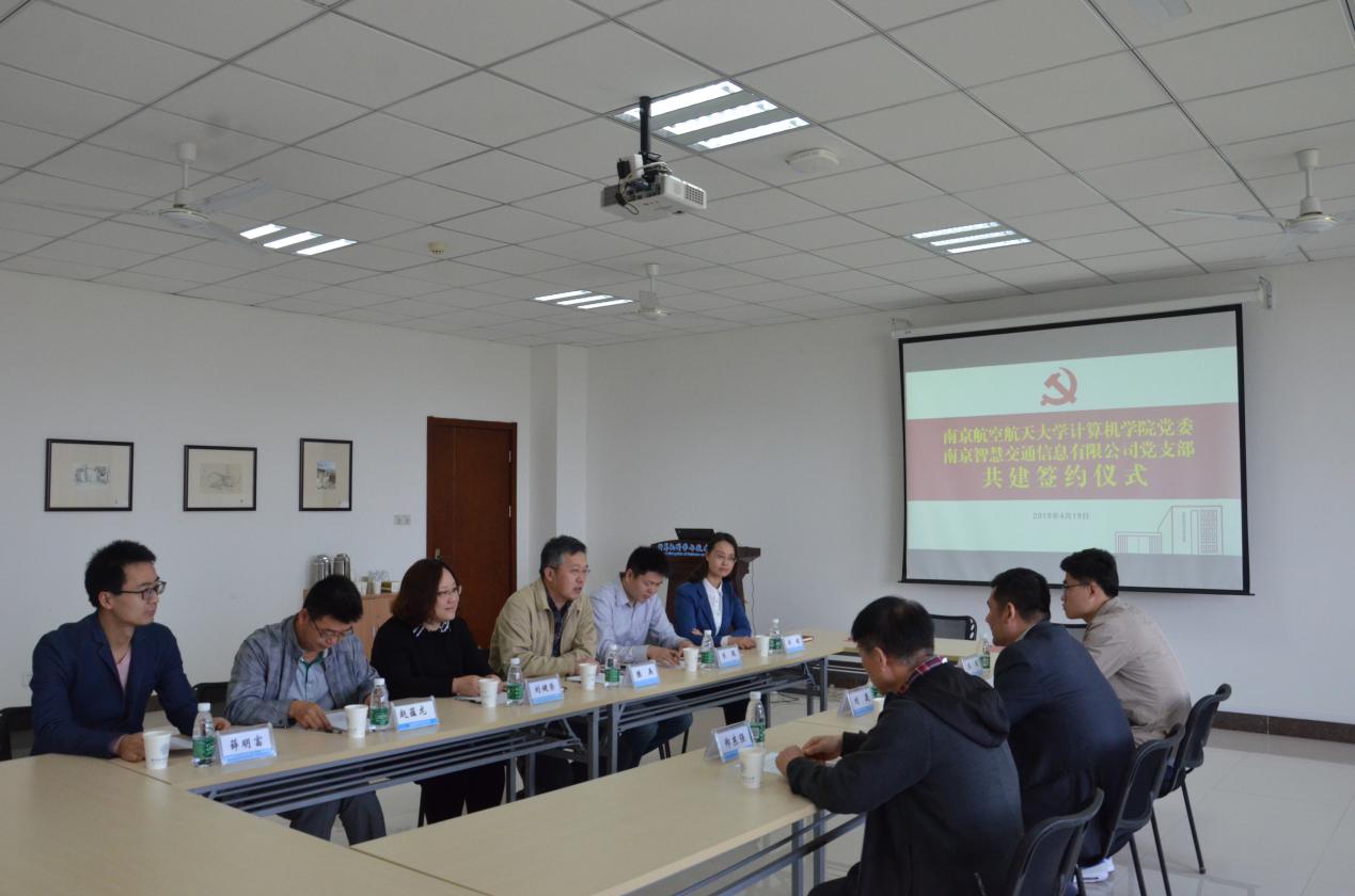 赵蕴龙介绍了党组织共建活动的背景,南京智慧交通信息有限公司党支部宣传委员郑东强、安全与网络党支部书记朱琨分别介绍了各自支部情况。与会双方对党组织共建内容进行了广泛深入的探讨,并达成以下共识:(一)定期交流学习,加强党建联系。多种形式(如视频会、微博、微信群、公众号)开展党建工作交流、使命形势教育、讲授党课、谈心交心等组织活动,交流党建经验,分享党建成果。(二)开展红色教育,增强组织认同感。多种形式开展红色教育活动,如集体重温入党誓词、开展座谈交流会、邀请先进模范讲党课、邀请先进模范讲党课、交叉谈心讲党性等活动。(三)加强技术交流,推进产学研用结合。以发展需求牵引融合创新,组建“机智先锋”联合研究团队,共同梳理重点难点及技术瓶颈问题,探索开展专题技术研究,共享双方优势资源。(四)建立育人基地,提升党建水平。通过教授讲学、学术论坛、专项研讨会、暑期实习、定向联合培养等活动,搭建校企双方人才交流平台,共享发展成果,推进技术研究,培育高端人才。(五)开展信息交流,放大合作优势。依托高校便捷丰富的科研及文献资源,搜集计算机行业最前沿的科技文献,掌握国际先进技术发展水平和趋势,开展专题交流,共同研究前沿及基础技术。