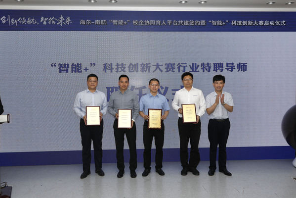 在海尔-南航“智能+”校企协同育人平台共建签约暨“智能+”科技创新大赛启动仪式上,施大宁代表学校致欢迎辞,他表示,在新工科建设背景下,海尔与南航洽谈校企协同育人,是顺应和契合新工科背景下人才培养的迫切需要,这是机遇和动力,更是挑战和压力。通过海尔-南航“智能+”校企协同育人平台,校企双方一定可以充分发挥各自特长,促进教育链、人才链与产业链、创新链有机衔接,实现资源共享、信息共享、优势互补、合作共赢。陈录城代表海尔讲话,他围绕“我们为什么共建‘智能+’校企协同育人平台”、“我们共建‘智能+’校企协同育人平台有哪些优势”、“我们如何共建‘智能+’校企协同育人平台”三个问题展开,回溯了合作的背景,并充分肯定了此次“智能+”校企协同育人平台共建的重要意义。施大宁和陈录城共同签署海尔-南航“智能+”校企协同育人平台共建协议。根据协议,校企双方将实现各类科创基地的资源共享,为新工科人才培养提供有力的基础条件与政策保障。之后,校企双方还签约了工业控制安全示范线共建协议,并共同为海尔-南航工业智能联合实验室揭牌。