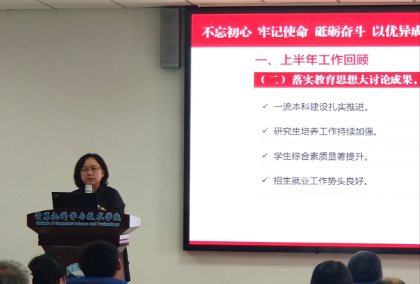 随后,副院长赵蕴龙介绍了教育部对人才培养的新要求和新举措,总结了上半年本科各项太阳集团,并对下半年重点工作进行了介绍,特别就工程教育专业认证申请工作进行了部署。副院长燕雪峰主要介绍了2019年的研究生招生和座位分配情况,以及研究生培养方案修订工作安排,并介绍了学校以及学院科研相关工作情况,特别是针对国防科研及人工智能的机遇进行了介绍,希望各位老师能够抓住机遇,收获累累硕果。