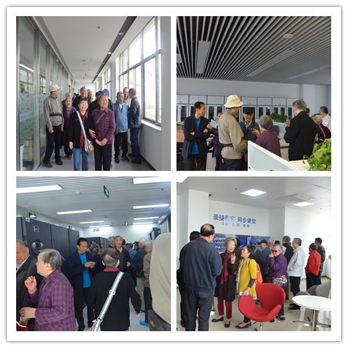 10月16日上午,学院分别从卫桥、西苑、揽翠苑将30位退休老教师接到将军路校区,院领导、教师代表早已等候在此,互致问候、愉快畅谈,洋溢着浓浓的喜庆气氛。老教师们参观了1号楼4层至6层的校信息中心办公区、数据中心机房和视频课程录播教室等,现代化的软硬件设施、现场工作人员的详细讲解,令老教师们对学校信息化建设和信息学科的飞跃式发展感触颇深。