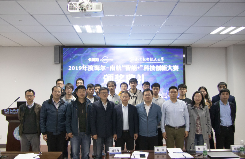 在现场答辩、评分之后,举行了颁奖典礼。在颁奖典礼中,赵蕴龙教授代表本次大赛的承办方发言,他表示,本次大赛依托海尔-南航“智能+”校企协同育人平台建设,顺应了新工科背景下人才培养的迫切需要,能够更好地助力青年学生成长,希望能够与海尔集团开展更加深入的合作。