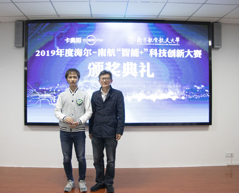 海尔-南航“智能+”科技创新大赛于今年6月份启动,各个参赛队伍经过半年的赛题研究与开发,最终有15支队伍进入决赛答辩环节。每个参赛队伍通过汇报详细讲解了对赛题的理解、分析和解决方案的思路及过程,并通过图片、现场操作等方式全方位展示了解决方案的效果。经过3个小时的激烈角逐,综合赛题成果评分与现场答辩评分,评选出了一等奖3名,二等奖3名,三等奖2名,创新应用大奖1名。其中,赵蕴龙教授指导的孙毅、蔡月啸、孟仕林三位同学斩获了本次大赛的创新应用大奖。