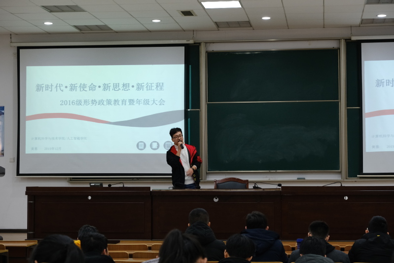 1212日下午,计算机学院2016级年级会在将军路校区D1213教室举行。本次年级会的主题为“新时代、新使命、新思想、新征程”,由2016级本科生辅导员黄基主讲,2016级全体本科生参与。