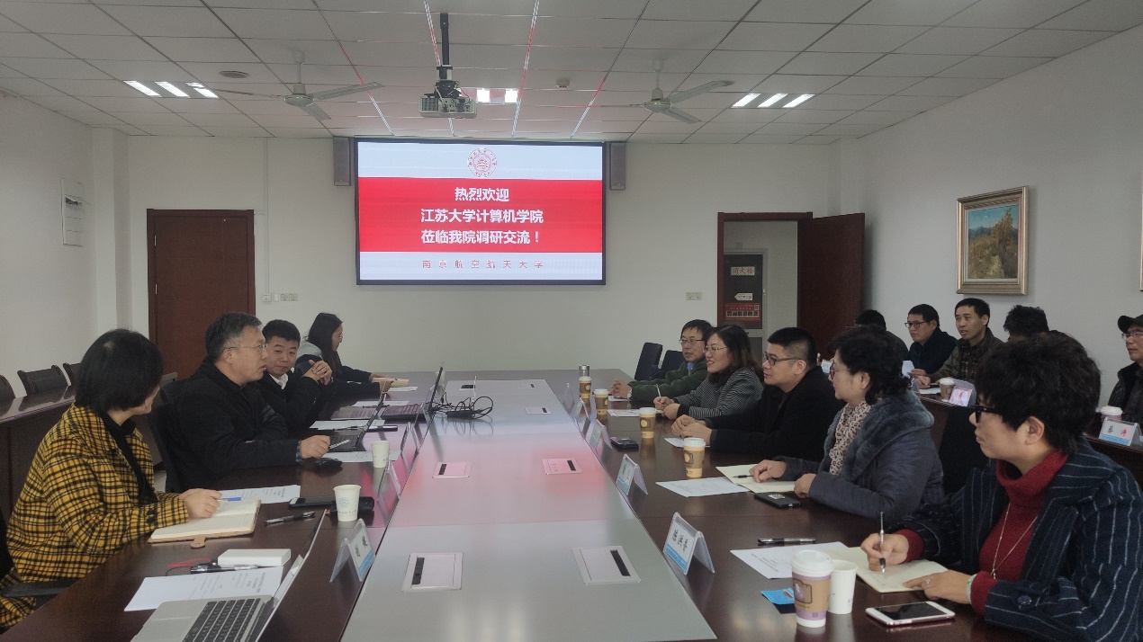 12月16日,江苏大学计算机学院院长王良民教授、副院长毛启容、张建明、副书记吴旻等一行13人来我院就学院整体情况进行调研交流。44118太阳成城集团/人工智能学院院长陈兵教授、副院长赵蕴龙教授、副书记管祎老师以及相关管理人员参加了本次交流活动。