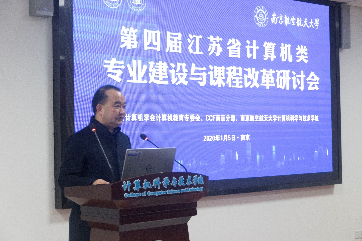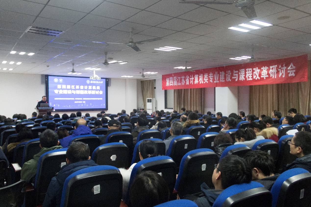 1月5日,由44118太阳成城集团/人工智能学院承办的第四届江苏省计算机类专业建设与课程改革研讨会在我校举行。来自省内外十余所学校的150余名教师齐聚我校,共同研讨计算机类专业建设与课程改革事宜。会议邀请了上海交通大学软件学院院长臧斌宇教授、合肥工业大学计算机与信息学院教学指导委员会主任胡学钢教授、西安电子科技大学计算机学院执行院长崔江涛教授等三位专家就工程教育专业认证进行了专题报告。校党委副书记陶勇、教务处处长孔垂谦、教师发展和教学评估中心主任周克印、长空学院副院长孙涵、44118太阳成城集团/人工智能学院赵蕴龙参加了会议,44118太阳成城集团/人工智能学院院长陈兵主持会议。