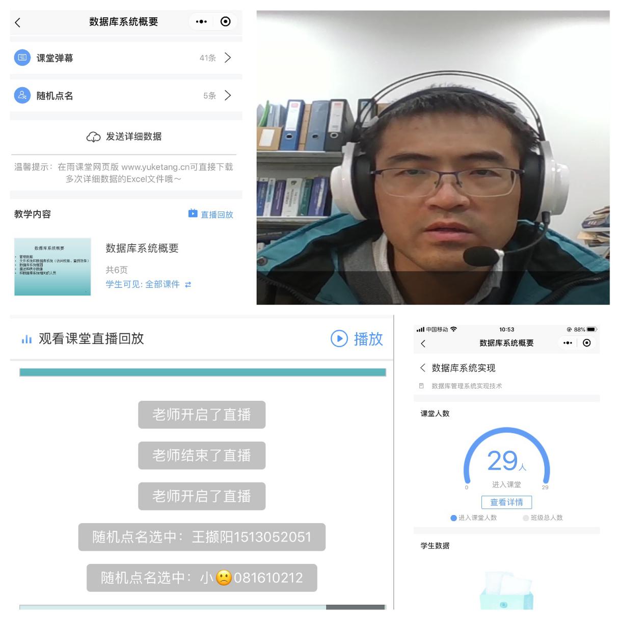 云端相见,在线教学有妙招。历经半个月的紧张筹备,老师们终于和自己的学生们在云端相会。开课第一天,学生们准时上线,老师们也纷纷使出妙招。例如许建秋老师的《数据库管理系统实现技术》充分利用了各平台的优势,雨课堂中的随机点名让学生们在小紧张之余又莫名兴奋、在线讨论你一言我一语持久热烈、专题PK你追我赶……一系列妙招让线上课堂气氛与线下课堂相比有过之而无不及。