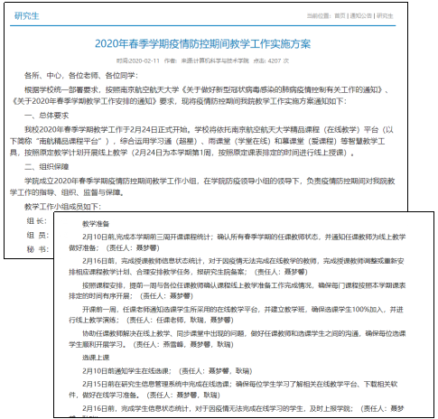 兵贵神速,为保障“停课不停教,停课不停学”的顺利实施,学院在接到延迟开学通知后,第一时间做出响应,提前半个多月就对研究生的教学管理工作进行了全面部署。