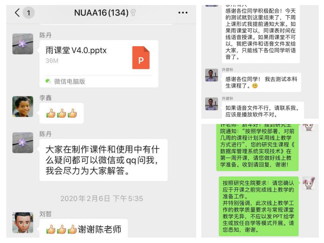 精准服务,后顾之忧一扫光。大规模线上教学对广大师生来说是新生事物,老师和同学都存在或多或少的畏惧感和困难。针对这种现状,学院把各项动员、培训工作前置,用成功案例引领消除线上线下的隔阂。教学管理和服务人员直接进入老师教学群,直面线上课程存在的种种问题和困难,并即时解决。