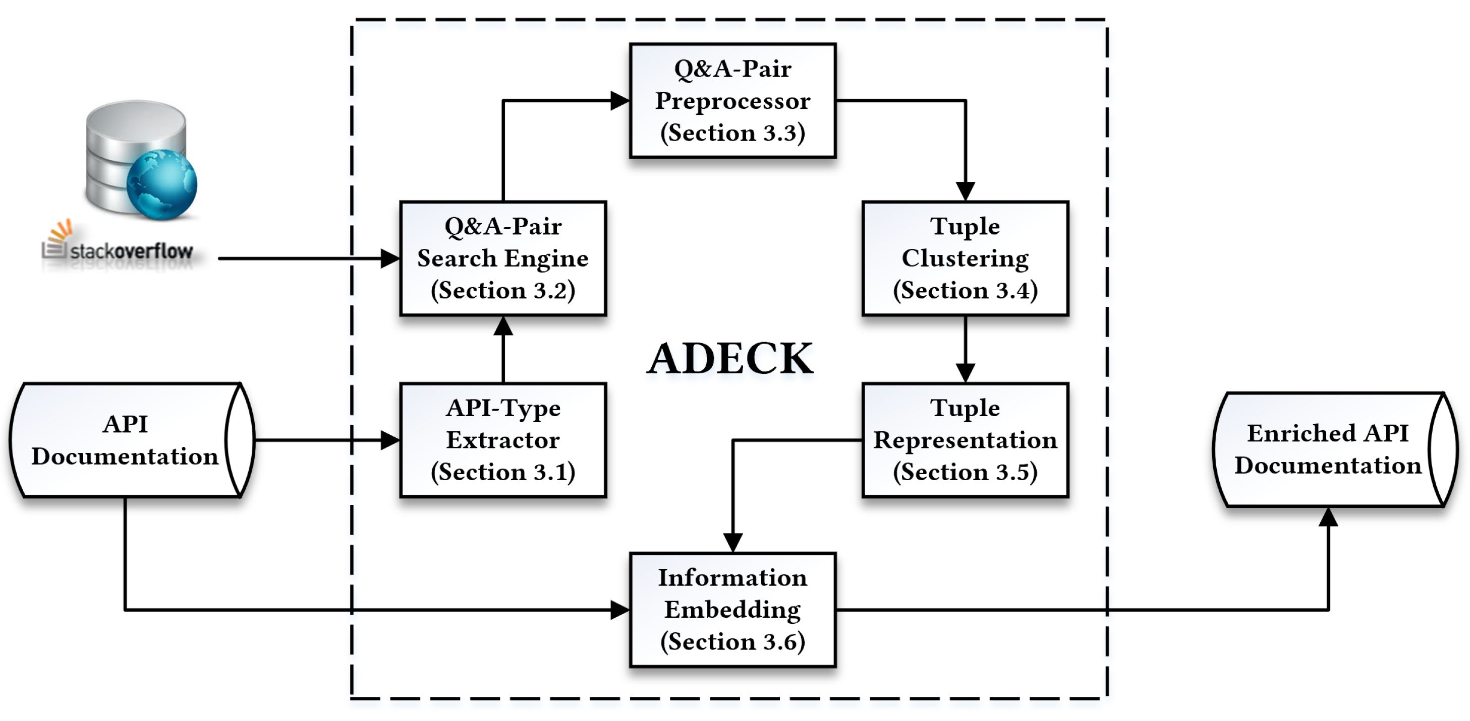 论文《Enriching API Documentation with Code Samples and Usage Scenarios from Crowd Knowledge》为与大连理工大学和哈尔滨工程大学合作完成的一项工作。该工作重点解决API参考文档缺少演示API正确使用的代码样例及其使用场景的问题。该工作创造性地从群智论坛Stack Overflow中抽取出高质量的代码样例及其使用场景,填充到对应的API参考文档页面中,完成信息的融合,形成代码样例增强的API参考文档。经过一系列的实证研究表明,相比于现有的最好方法,代码样例填充后的API参考文档可以帮助软件开发人员在更短的时间内完成更多的编程任务,极大地提高了软件开发人员的编程效率。