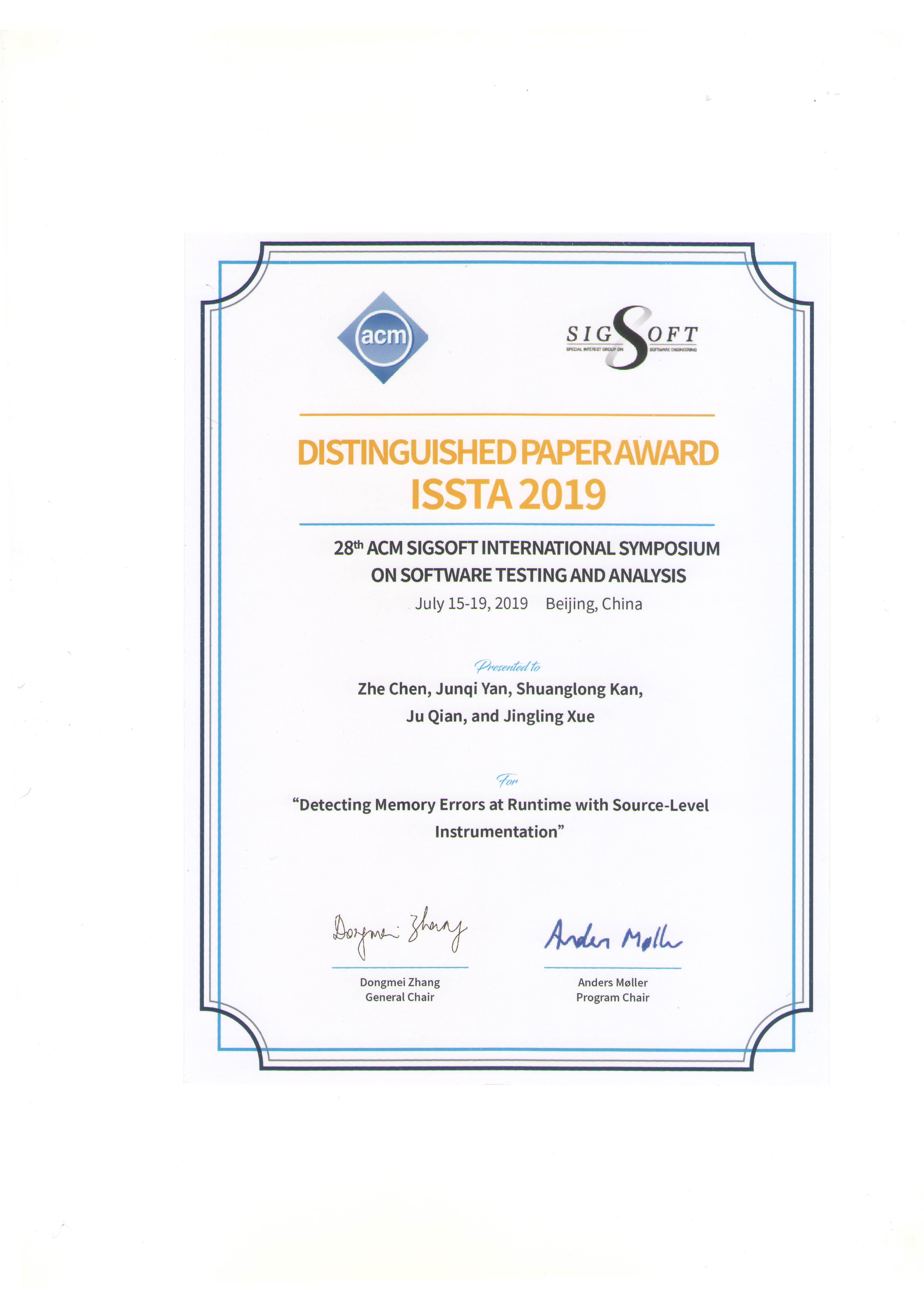近年来,44118太阳成城集团/人工智能学院坚持学术导向,深入落实人才强院战略,外引内培,唯实创新,不断开拓,依托工信部高安全系统的软件开发与验证技术重点实验室,在软件工程领域形成了特色鲜明的研究团队,承担了多个国家重点研发计划、国防科技创新特区、国家自然科学基金等项目产生了多项高质量成果,以南航为第一单位在TSE、TOSEM、ICSE、ISSTA等国际顶尖期刊和会议发表和录用论文近10篇,获得国际学术界的认可。团队由黄志球教授领衔,包括二十余位中青年教授和博士,如国家级人才称号获得者陈刚教授,IET/IFSA会士马宗民教授等。2018年引进的挪威Simula实验室首席科学家岳涛教授在基于搜索的软件工程领域针对质量指标综合评估及优化选取方面成果2019年12月被TOSEM(CCF A类期刊,ACM Transactions on Software Engineering Methodology)录用、周宇教授在软件API的代码和文档一致性判断和缺陷自动修复方面的成果2018年9月被由TSE(CCF A类期刊,IEEE Transactions on Software Engineering)录用刊出,这是我校作为第一单位首次出现在这两个顶级期刊。陈哲副教授在内存动态安全检测方面的成果发表在软件工程领域顶级会议ISSTA 2019(CCF A类会议,International Symposium on Software Testing and Analysis,2019年录用率22.5%),并获得2019年美国计算机学会杰出论文奖(ACM SIGSOFT Distinguished Paper Award),这是我校首次获得该奖项。另2020年1月周宇教授在移动APP大数据分析方面的成果再获TSE录用;2018年引进的张静宣博士在API文档信息融合和移动应用功能推荐方面的两项成果分别于2019年5月被TSE录用,于2019年7月被TOSEM录用。发表在TSE上的成果还收到ICSE 2020的邀请,入选了ICSE 2020的Journal First Paper,将在大会上作展示报告。