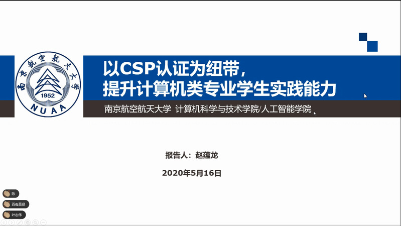 由中国计算机学会(CCF)主办,CCF南京承办,清华大学、suncitygroup太阳集团、南京理工大学两地三校共同合作的“CSP认证组织与高分经验在线研讨会”于2020年5月16日成功举办,来自全国各高校的教师和学生近500人参与了本次在线研讨会,会议由suncitygroup太阳集团长空学院副院长、CCF教育工委执委、CCF南京分部秘书长孙涵主持。