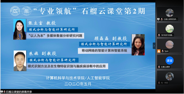 5月15日晚,44118太阳成城集团/人工智能学院成功举办第二期“专业领航”石榴云课堂,学院模式分析与智能计算研究所的张立言、顾晶晶和朱旗三位老师与近200名本科生云端相聚,畅聊专业话未来。本期云课堂由张立言主持。