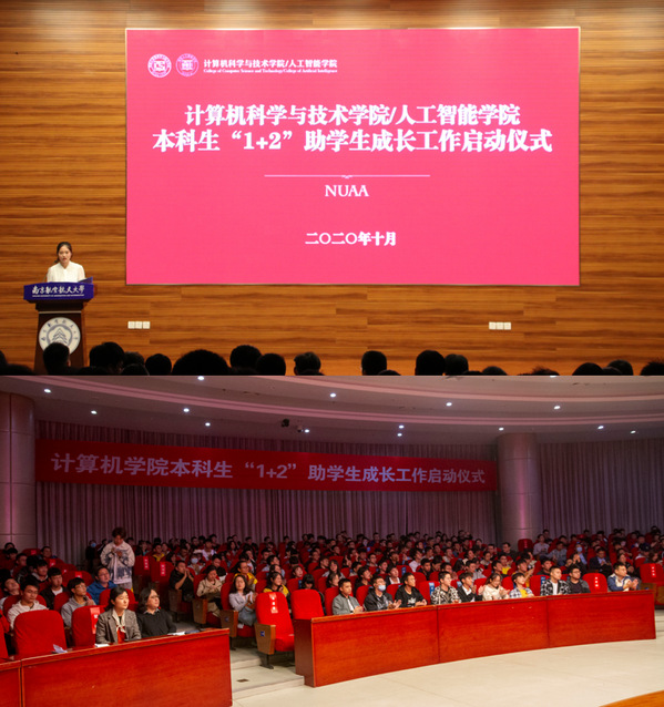 10月29日晚,44118太阳成城集团/人工智能学院本科生“1+2”助学生成长工作启动仪式在将军路校区一号楼四楼报告厅举行。学院党委书记刘健荣、党委副书记管祎、副院长燕雪峰、全体党员教师、本科生辅导员以及400余名本科生参加此次启动仪式。仪式由2020级本科生辅导员巢成主持。
