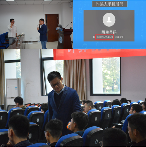 首先,周栋栋从校园诈骗案情讲起,结合具体案例向大家介绍了常见的作案形式与诈骗手法,他还通过展现真实的诈骗电话录音、现场模拟诈骗过程等,帮助学生更加直观地认清诈骗行为的真面目。