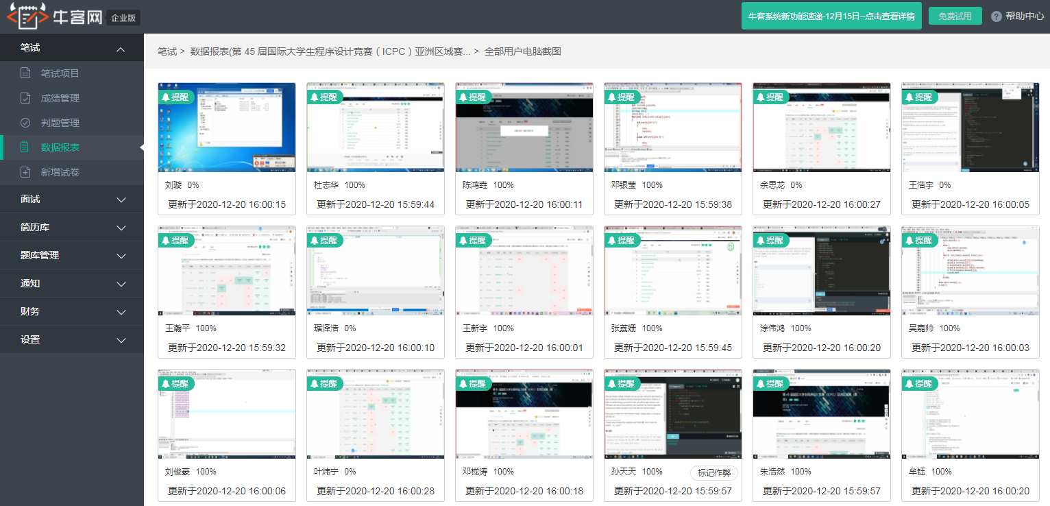 图2 牛客网在线笔试平台对参赛队伍进行实时监控