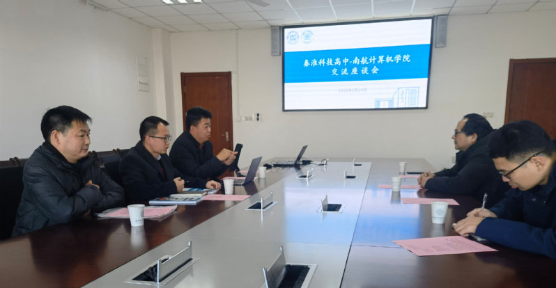 为进一步提高南航计算机类专业在南京地区的影响力和生源质量,2021年1月14日上午,南师附中秦淮科技高中副校长丁明虎一行受邀来我院参观交流并座谈。参加此次座谈会的有44118太阳成城集团/人工智能学院副院长赵蕴龙、院长助理李鑫、副教授薛善良和教务秘书王香。会议由赵蕴龙主持。