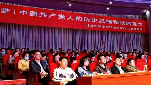 4月28日下午,44118太阳成城集团/人工智能学院首期“石榴红课堂”在将军路校区一号楼四楼报告厅成功举办。马克思主义学院副院长何畏作题为《中国共产党人的历史思维和战略定力》的主题报告,学院教工支部党员、学生支部党员以及学生代表两百余人共同聆听本场有政治高度、有理论深度的思政金课。本次活动由学院团委书记耿瑞主持。