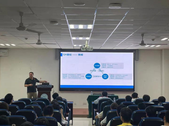 会上,王鑫教授以《知识图谱数据管理技术新进展》为题,以知识图谱的发展概述、数据模型、存储方案、查询处理四个部分,由浅入深地介绍了知识图谱数据管理方法与技术的最新进展,完备详细地介绍了迄今以来各种知识图谱的存储方案,通过知识图谱可视化查询系统演示,生动说明了知识图谱中的查询过程,并在最后对知识图谱数据管理的未来研究方向进行了展望,为在场的老师与同学带来了新的启发与思考。