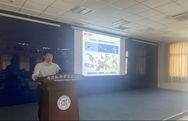 刘长青教授的报告主题为航空航天大型结构件的智能制造,他介绍到新一代飞机对大型结构件的加工变形控制精度提出了更高的要求,需要更加智能和精准的加工控制技术。接着他介绍了团队针对以上重大需求,突破传统固定装夹思路的局限,发明了浮动装夹自适应加工新工艺,并提出了监测数据驱动的加工变形控制方法,最终实现了大型结构件的加工变形精确控制。最后他还分享了相关人才培养方面的经验。