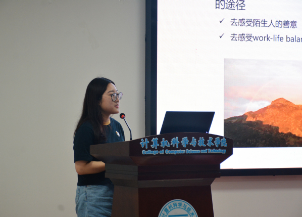 随后,刘梦瑶从初期职业规划、入职和职业规划刷新三个方面向同学们分享了自己的求职过程。她结合自身经历建议同学们选择岗位时要从自身兴趣和能力出发,除技术岗位外,也可以考虑非技术岗位。她鼓励同学们刚入职时不必畏惧,最重要的是要找准个人定位与角色。