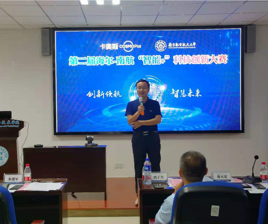 6月17日,第二届海尔-南航“智能+”科技创新大赛决赛评审及颁奖典礼在我校顺利举行。海尔工业智能研究院副院长刘子力、教务处副处长朱建军、能源与动力学院副院长张天宏、电子信息工程学院副院长张小飞、航天学院副院长朱旭东、44118太阳成城集团/人工智能学院副院长赵蕴龙、院长助理李鑫、以及参赛师生共计60余人参加了现场活动。此次决赛采用线上线下同时评审的方式,邀请了多名专家进行直播评审,参加线上评审的专家有海尔工业智能研究院邓友良、贾冬冬、张天、诸葛慧玲等。