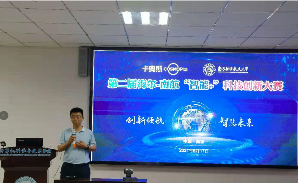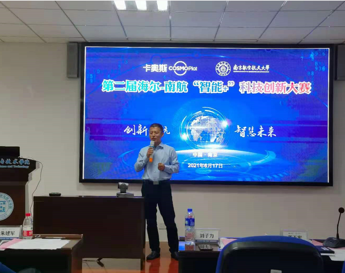 6月17日,第二届海尔-南航“智能+”科技创新大赛决赛评审及颁奖典礼在我校顺利举行。海尔工业智能研究院副院长刘子力、教务处副处长朱建军、能源与动力学院副院长张天宏、电子信息工程学院副院长张小飞、航天学院副院长朱旭东、44118太阳成城集团/人工智能学院副院长赵蕴龙、院长助理李鑫、以及参赛师生共计60余人参加了现场活动。此次决赛采用线上线下同时评审的方式,邀请了多名专家进行直播评审,参加线上评审的专家有海尔工业智能研究院邓友良、贾冬冬、张天、诸葛慧玲等。