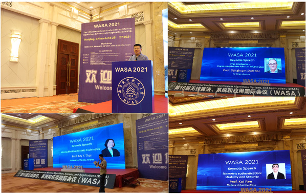 2021年6月25日到27日,第十六届无线算法、系统和应用国际会议(The 16th International Conference on Wireless Algorithms, Systems, and Applications, WASA 2021)在南京召开。