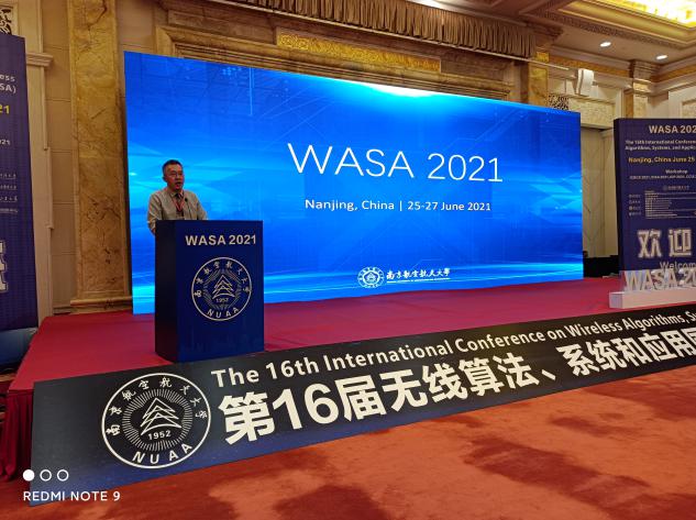 2021年6月25日到27日,第十六届无线算法、系统和应用国际会议(The 16th International Conference on Wireless Algorithms, Systems, and Applications, WASA 2021)在南京召开。