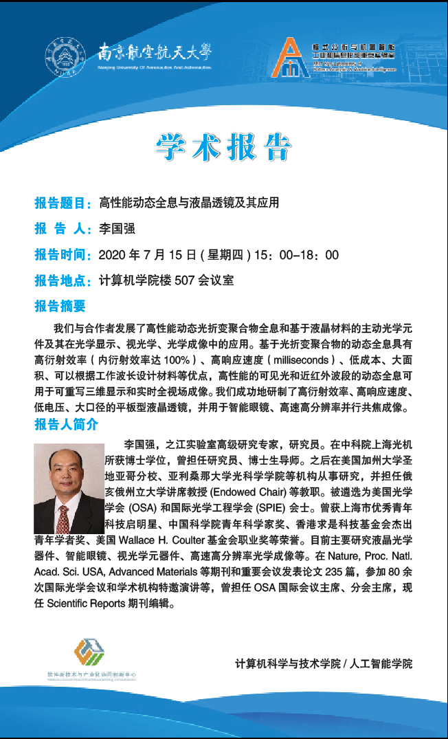 【石榴大讲堂】高性能动态全息与液晶及其应用