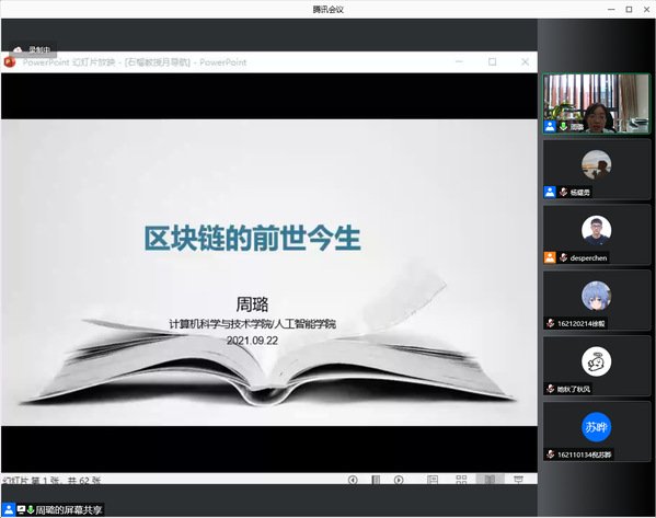 9月22日上午,44118太阳成城集团/人工智能学院第二十六期“石榴教授月导航”云端开讲,学院网格与云计算研究所教授周璐作主题报告,与270余名学生共同探索“区块链的前世今生”。