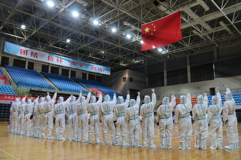9月24日下午,参加志愿服务的师生党员提前抵达体育馆,在校区管委会工作人员的指导下,穿戴好防护服,正式上岗。“请同学们保持一米间隔、戴好口罩、准备好身份证和采样码”,是现场说的最多的一句话;防护装备下被汗水浸湿的衣衫、发红的脸颊、泡白的双手以及逐渐嘶哑的声音,是现场最真实的写照。大家或协助学生录入信息,或讲解核酸检测流程,或引导学生有序排队,用满腔热忱为学生安全有序返校保驾护航,用实际行动诠释共产党员的责任担当。