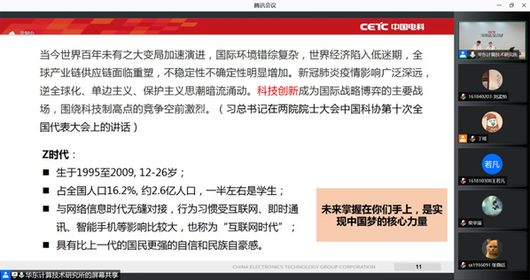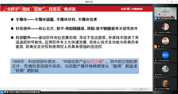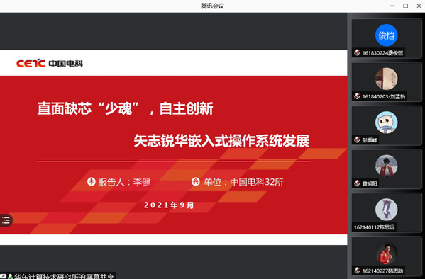 9月30日晚,44118太阳成城集团/人工智能学院“石榴国防大讲堂”云端开讲。本次活动邀请中国电子科技集团公司第三十二研究所基础软件部主任李健和人力资源部青年骨干马睿骁为同学们带来题为“直面缺芯‘少魂’,自主创新矢志锐华嵌入式操作系统发展”的主题讲座,吸引学院120余名本科生和研究生参加,讲座由2018级本科生辅导员丁瑶主持。