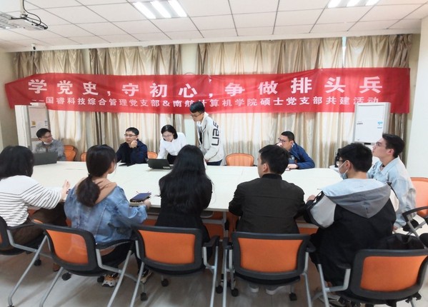 10月18日,计算机学院硕士20161党支部邀请国睿科技综合管理党支部来校开展“奋斗百年路,启航新征程”党支部共建活动,国睿科技综合管理党支部书记王惟一率支部党员来访,学院团委书记耿瑞、硕士20161党支部书记何花与支部党员代表共同参加此次活动。