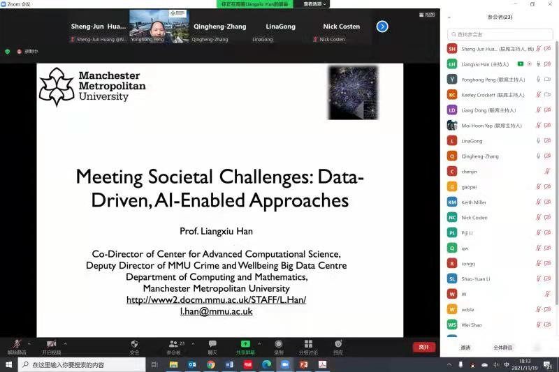 研讨会分别邀请了Liangxiu Han、Piji Li、Keeley Crockett、Wei Shao和Moi Hoon Yap等五位教授做学术报告,内容汇集了人工智能伦理、医学影像分析、自然语言处理、人机交互等领域的最新研究成果。最后,双方就可能的合作方向展开了深入交流,并初步确定了合作论文、联合构建有影响力的数据集、举办国际竞赛等多种合作形式。