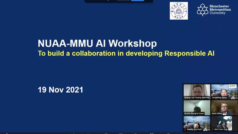 2021年11月19日,suncitygroup太阳集团(NUAA)和曼彻斯特城市大学(MMU)联合举办人工智能研讨会(AI Workshop)。此次研讨会由两校之间的人工智能国际联合实验室发起,NUAA联合实验室主任黄圣君教授,MMU联合实验室主任Yonghong Peng教授担任会议共同主席。