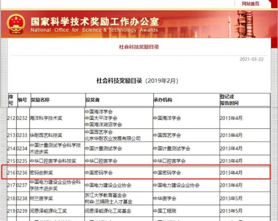 “密码创新奖”是国家科学技术奖励办公室认可的中国密码学会的重要奖项,奖项设置特等奖1名,一等奖2名,二等奖6名。一奖项授予在密码领域有较大创新,达到国际先进水平,且对促进密码科技进步产生重大影响的科技工作者。历史上,该奖项的特等奖仅由王小云院士一人获得过,而一等奖迄今为止仅有五人获得(包含刘哲教授在内)。