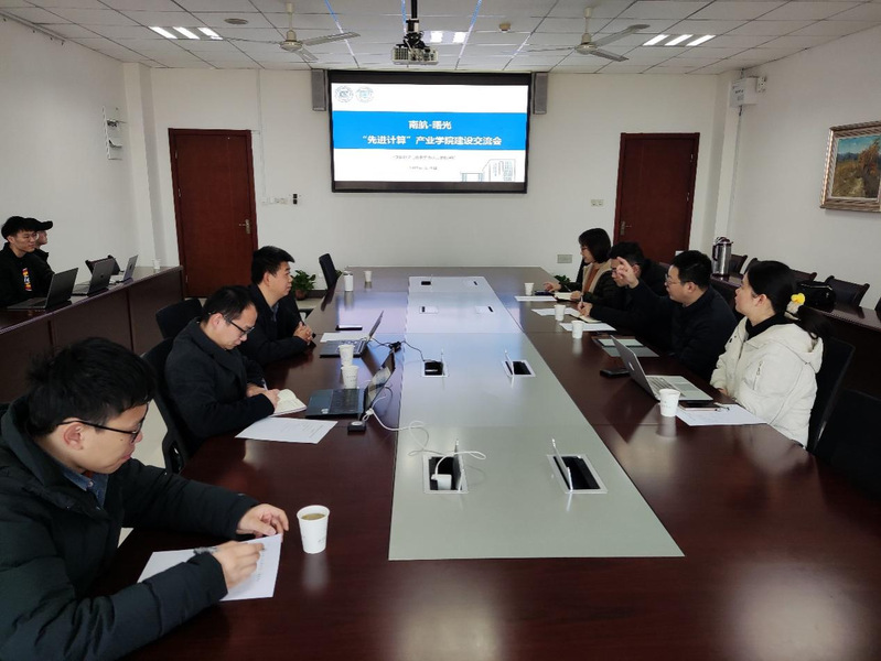 2022年1月19日上午,44118太阳成城集团/人工智能学院组织召开了“先进计算”产业学院建设交流会。中科曙光(南京)计算技术有限公司总经理左洪年一行参加交流,学院副院长赵蕴龙、院长助理李鑫、教师刘春颜参加了此次交流会,会议由赵蕴龙主持。